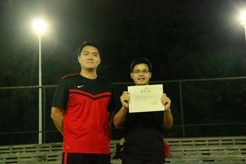张鹏老师为新生杯羽毛球赛冠军13班联队颁奖