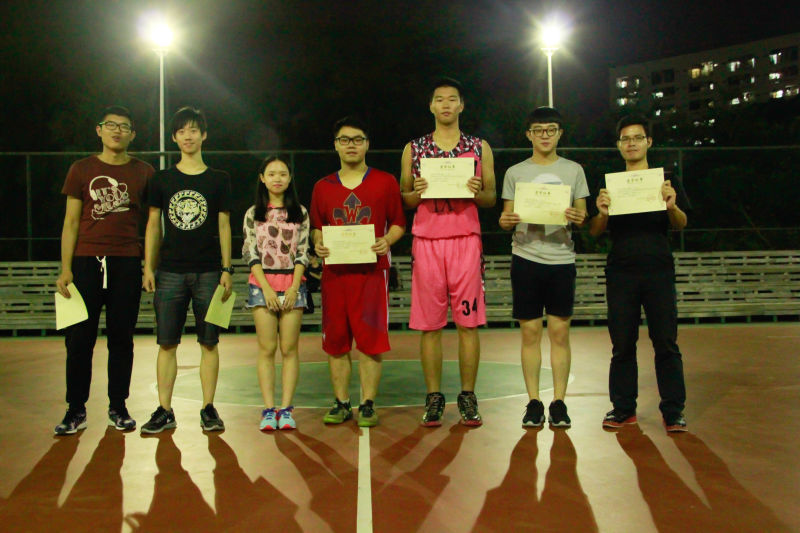 新生杯羽毛球赛和篮球赛优胜班级的集体合影