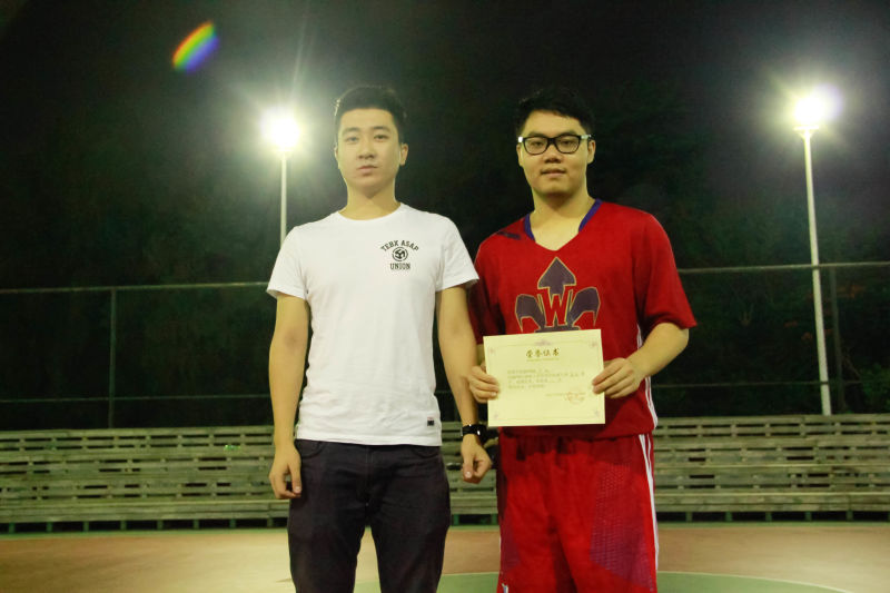 管理学院学生会主席陈泽谊为新生杯篮球赛亚军8班颁奖
