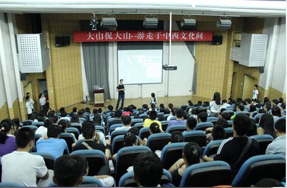 2014年9月25日晚19:00,中加亲善大使、加拿大籍著名学者、央视著名主持人大山先生应邀来到深圳大学,在科技楼二号报告厅举办了一场幽默与哲理兼具的讲座。此次讲座由深圳大学管理学院学生会主办,管理学院学生会学术部承办,管理学院辅导员孙思老师出席了本次讲座。