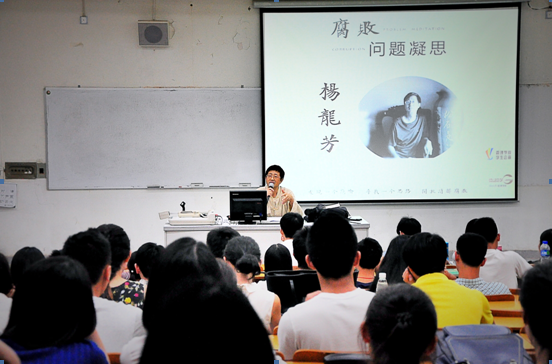本次讲座邀请了深圳大学管理学院教授、管院名嘴杨龙芳老师作为主讲嘉宾。讲座过程中,杨龙芳老师就腐败问题,以“发现一个隐喻、寻找一个思路、开放消解腐败”的观点,与同学们一起探讨腐败的实质、分享其自身的感悟,从而引起大家对腐败问题的反思。
