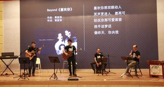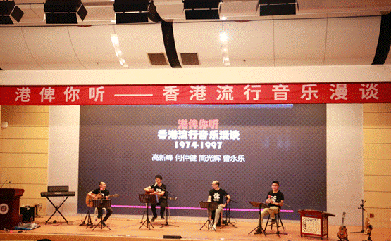 5月31日晚上,由深圳大学传播学院教师、校园资深音乐人简光辉,深圳大学国际交流学院尤克里里教师何仲健,自由原创音乐人高新峰,材料学院党委副书记曾永乐主讲的《港俾你听——香港流行音乐漫谈》在科技楼一号报告厅成功举办,管理学院何军书记作为表演嘉宾也出席了活动。