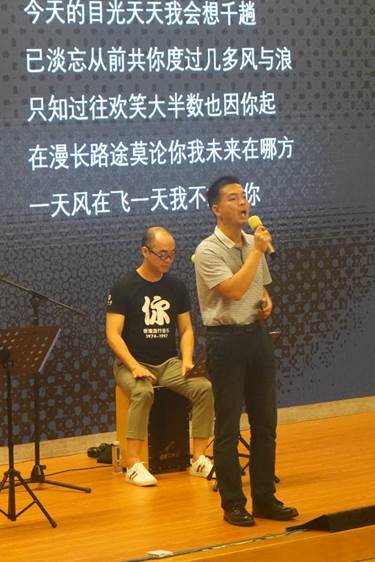 接下来四位主讲人串烧了罗文的《小李飞刀》、《狮子山下》。曾老师从台上唱到台下,把麦递给了赵大宇老师,一起合唱了《好歌献给你》,借此感谢赵老师对曾老师的教导之情以及深圳大学做出的贡献。