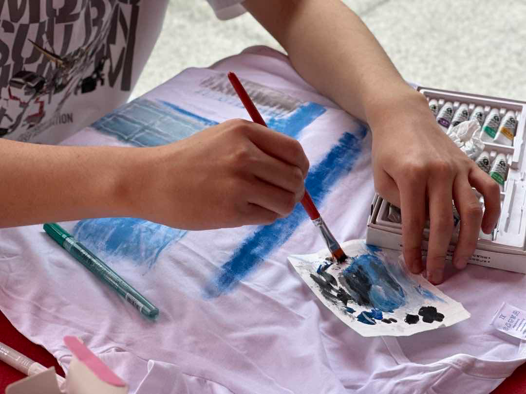 (“衣笔点睛”活动中同学在T恤上随心创作)