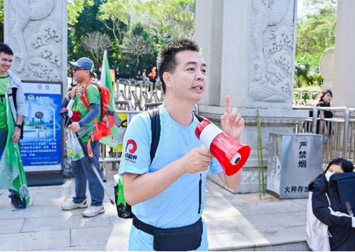 早上10:00,140名师生分别从深圳大学丽湖校区、粤海校区分三辆大巴出发,抵达梧桐山脚。管理学院党委书记何军就此次活动做动员发言,为全体成员加油打气,提出所有参与者保证自身安全的前提下,力争全员登顶为深大40岁生日献礼的目标。