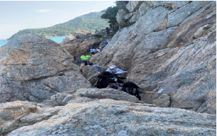 在困难的路段,他们互相搀扶,互相鼓励,紧密团结。无论是攀爬陡峭的岩壁还是跨越湿滑的岩石,我院师生和校友们坚守团结友爱的精神,共同克服了一个个难关,这种团结的力量使他们于当晚18:00欢欣鼓舞地抵达终点——桔钓沙沙滩,在沙滩处,全体成员自由活动,合影留念,共同迎接夜幕的降临。