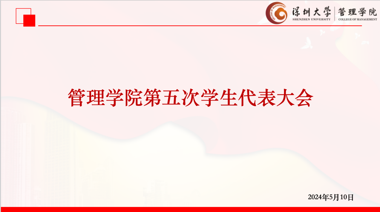 2024年5月10日晚上18:00-19:30,管理学院本科生第五次学生代表大会顺利召开。本次会议的到会人员有:管理学院本科生学生会指导老师谢杨慧老师、大会筹备委员会成员、各候选人以及各班级代表。
