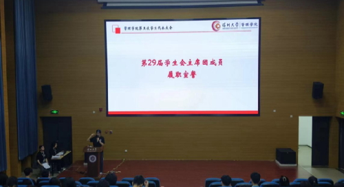 随后,新一届学生会主席团成员就履职庄严宣誓,并签写自律条约。