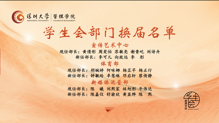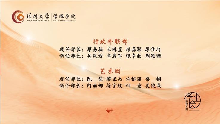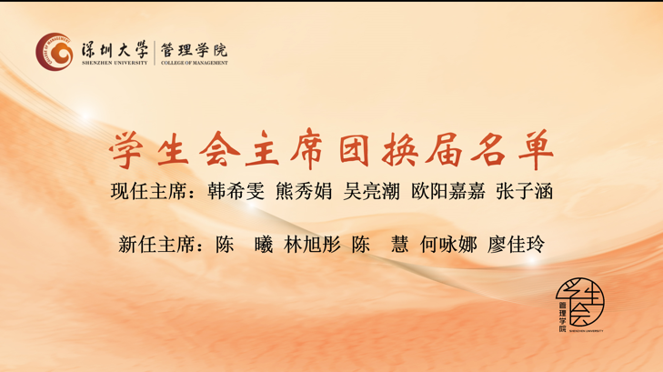 最后,韩希雯主席宣布学生会换届名单,谢杨慧老师与第23届管理学院学生会全体工作人员进行合影留念,总结大会圆满结束。
