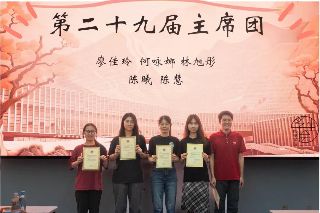 接着是是主席团交接仪式。主席团负责学生会的总体规划,财务收支和会议决议等等,保证学生会正常运转。