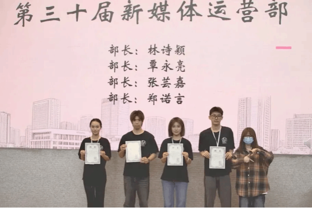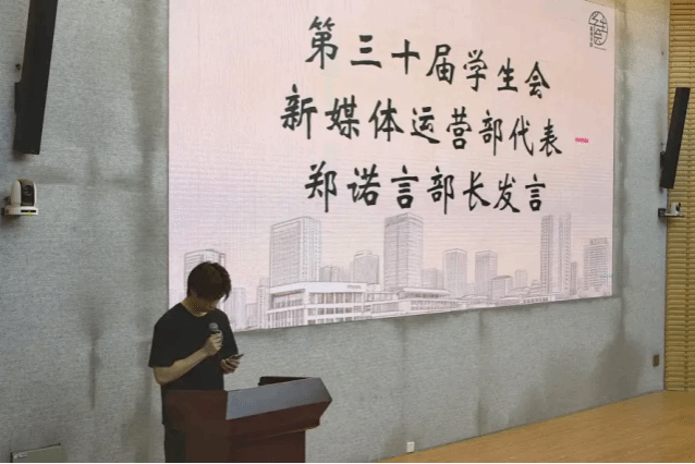 第30届新媒体运营部代表郑诺言部长发言道:“回望过往,我们通过讲座、文创节、公众号推文等活动收获成果与友谊,在实践中稳步成长。如今,朝气蓬勃的小干事们加入,期待大家尽情释放创造力,让活动更精彩。我们将传承学生会初心与温暖,让每一位成员都能收获归属感与快乐。新学年,我们将接过接力棒,在老师和主席的带领下脚踏实地、认真负责,让学生会更有凝聚力、温度与作为。愿与大家并肩书写精彩故事,在工作中进步、在陪伴中成长,祝大家学业高升、收获难忘回忆!”