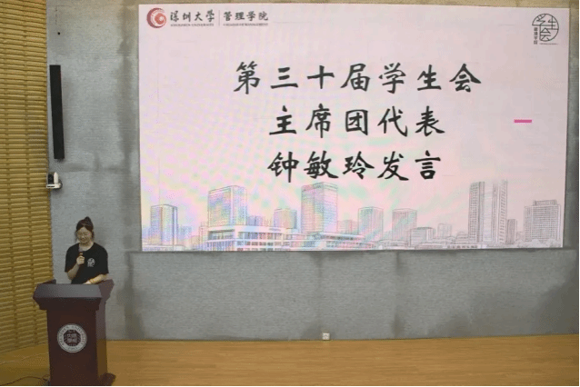 第30届主席钟敏玲学姐发言道:“过去一年,学生会在前辈带领下硕果累累,彰显了凝聚力与担当。如今我们接过重任,既感光荣更知责任。学生会是桥梁更是成长平台,我们将秉持‘服务、创新、团结、奉献’的宗旨,以饱满热情务实履职。未来,我们将深化服务意识、完善制度建设、创新校园活动、加强内外协作,全心全意为同学服务。也恳请大家积极参与、监督指导,让我们携手共创和谐活力、富有创造力的校园!”