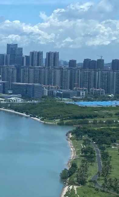 参访安排结束后,陈绩伟带领校友老师们登上顶楼的观景台一览前海湾的美景,并请工作人员为大家清晰的介绍了前海规划。前海湾优美的海岸线与精致的城市规划巧妙融合,大家不禁赞叹连连。