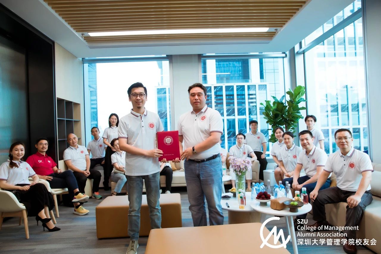 深圳大学管理学院党委书记何军、前副院长周志民、市场营销系主任刘世雄、工商管理系主任初大智、EDP教育中心项目主任李云携二十余位校友及老师,共同前往管理学院03级校友陈绩伟所在的深圳嘉禾未来控股有限公司进行交流学习。