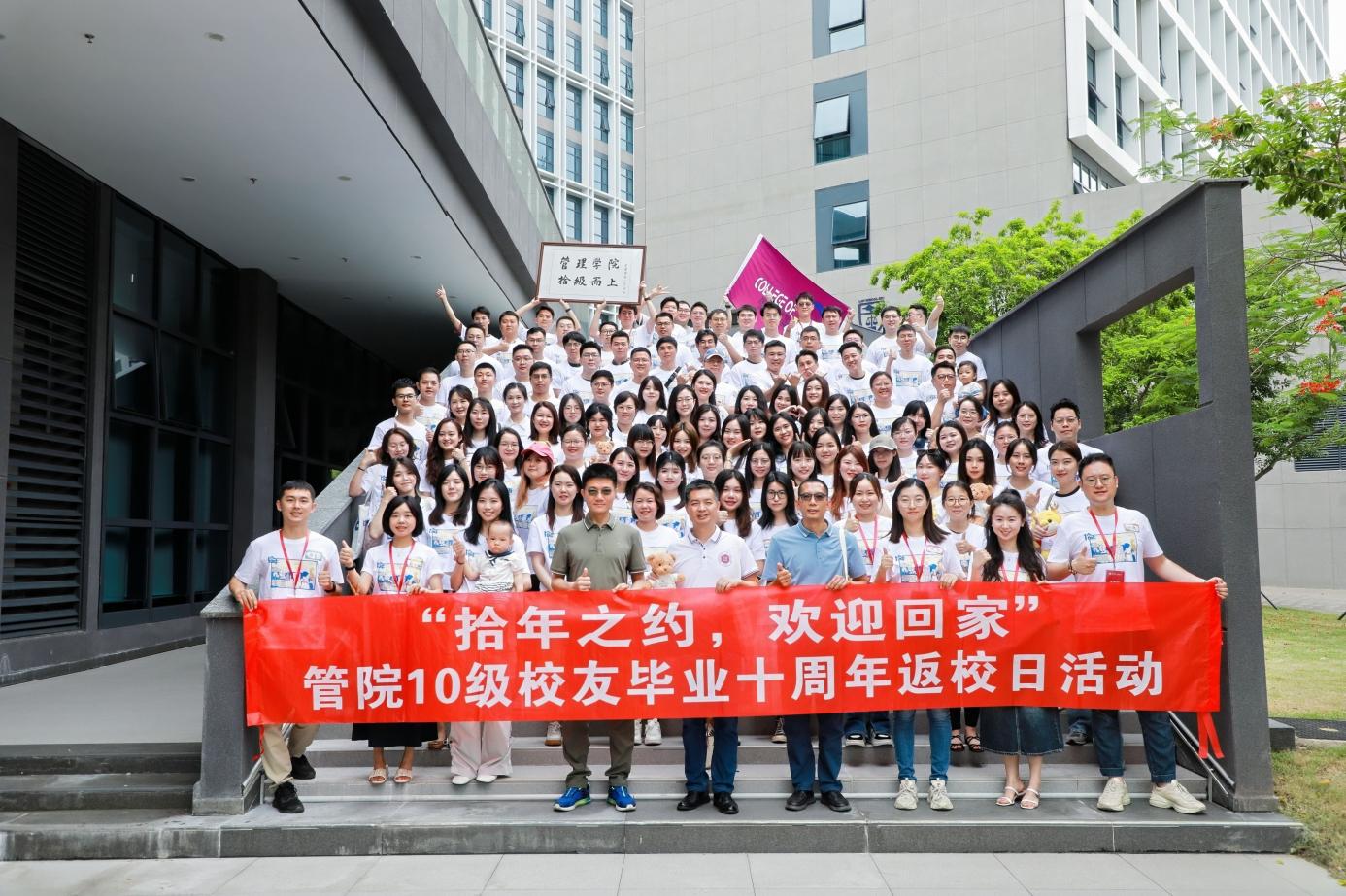 春未尽,夏初临,荔园的五月清澈而明朗。5月18日这天,管理学院2010级校友们携带着对岁月的感悟与对母校的深情,相聚于深圳大学丽湖校区,共庆毕业十周年。本次返校日活动由10级校友自发组织,共计130余位校友重返荔园,回忆往昔,展望未来,校园内欢声笑语,热闹非凡。