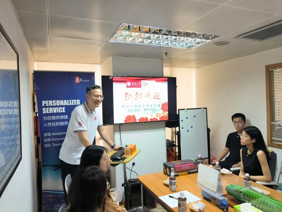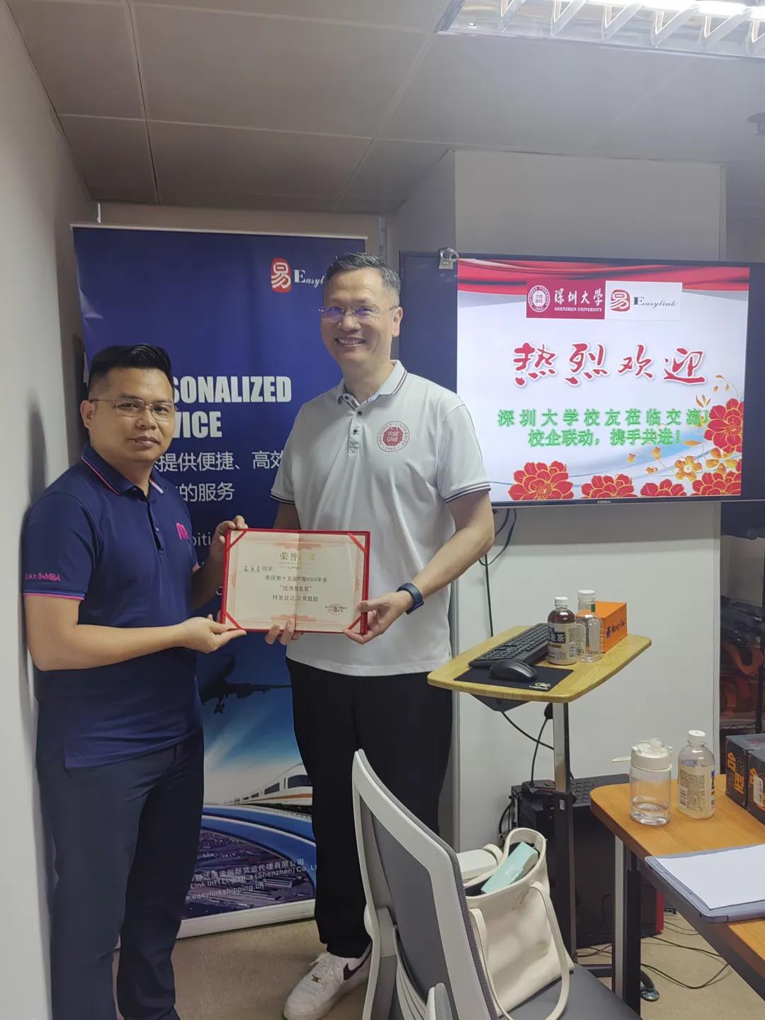 2024年4⽉26⽇,2022级市场营销01班校友创新导师苏振保师兄带领了深⼤管院2022级市场营销1班及工商管理、电子商务等专业15名同学来到了94级本科、08级MBA蔡勇弟校友的企业--深圳市易达通运国际货运代理有限公司进行参访。