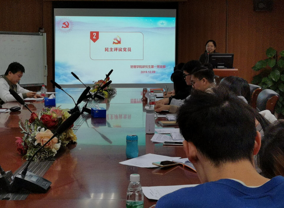 2019年12月9日,管理学院研究生第一党支部在文科楼1400会议室召开了主题为专题组织生活会暨民主评议党员的党员大会。支部会议强调,一定要把习近平总书记重要讲话精神和十九届四中全会精神学习好、领会好、贯彻好,要做到坚持学通弄懂、学以致用,真正用先进思想武装头脑、指导实践、推动工作,把会议精神切切实实转化为推动高质量发展的强大动力。