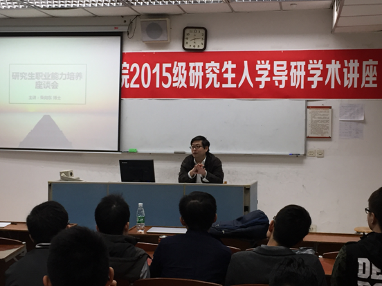 2015年12月18日晚19:00,管理学院学术型研究生“启航”导研系列讲座第二十一讲——“研究生的职业能力培养”在教学楼B206教室举行,由海王集团总经理柴向东先生主讲。