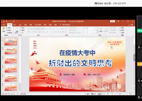 线上讲授了题为《在疫情大考中折射出的文明思考》的新学期“思政第一课”,围绕疫情背景讨论当下青年学生应有的觉悟、贡献与担当。