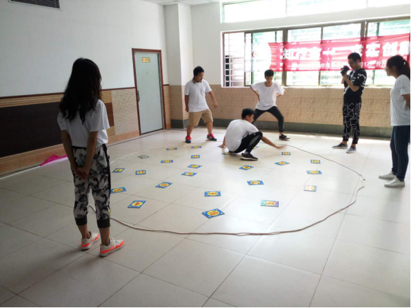 以“队”为单位的第一个任务是要求每队大约11人不间断向右传递水瓶六次、依次不出错报数到50并有节奏累加击掌喊出“我们是最棒的团队”。各小组趁着休息时间不断练习,最终有两只队伍通过挑战,其中“样样好队”以44秒的成绩取得第一。虽然还有两队没能通过挑战,但是他们也积极得做完了整个项目,我们看到了那种不服输的坚持。