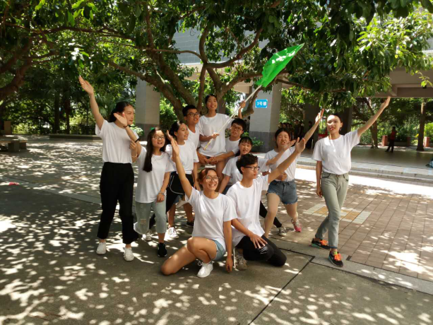 上午九点半,同学们顺利到达拓展目的地——霞涌拓展基地。朱维华老师给新生们交代了一些注意事项,大家在教练的引导下,进行了一个小游戏分为四个队伍。在游戏过程中,同学们需要给同伴微笑以此来相互认识。