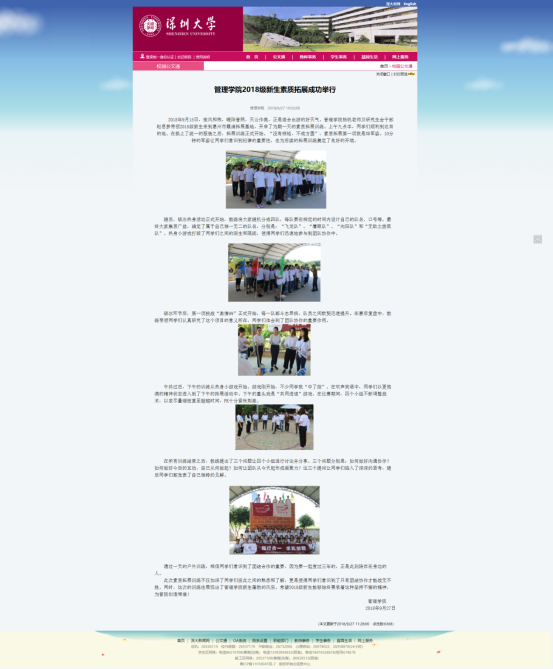 此次素质拓展训练不仅加深了同学们彼此之间的熟悉和了解,更是使得同学们意识到了只有团结协作才能战无不胜。同时,这次的训练也展现出了管理学院新生蓬勃的风采。希望2018级新生能够始终秉承着这种坚持不懈的精神,为管院创造辉煌!