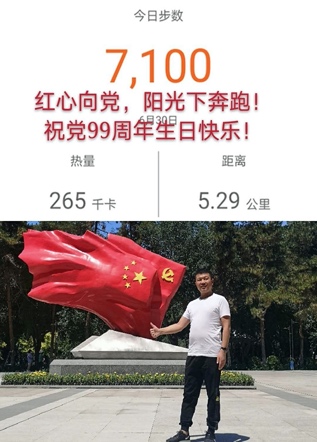 这种灵活有意义的活动形式,得到师生队员们的青睐和积极响应。自6月25日活动发起至7月1日,共计60多人次完成活动并在跑团微信群里打卡。有队员选择健步走1921步向党致敬,有队员选择与党旗或者红色景点合影党致意,还有队员选择“快乐跑”19.21公里、甚至99公里向党送上生日“大礼”。跑团师生通过这一串串有寓意的数字、一句句朴实的致敬话语或一张张充满激情的照片,表达了对党和国家满满的敬意与祝福。大家坚信,在党的坚强领导下,中国人民会尽快战胜疫情,加速推进经济社会发展,一步一个脚印实现民族复兴的中国梦!