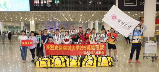深圳大学MBA校友会代表(苏振保、杨健强及家属、黎丰、袁岭、刘丽珠、钟艳梅)、26日凌晨4点迎接凯旋深大沙9队员凯旋