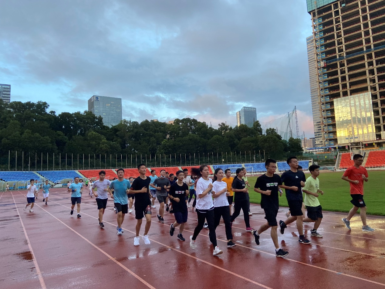 2020年9月21日下午,头顶雨后的彩虹,管理学院阳光跑团在新学期纳新结束后,首次组织全团集训。本次集训,共有来自阳光跑团教师分团、研究生分团以及本科生分团的约70余名队员参与。虽然下着小雨,元平体育场的橡胶跑道依然湿漉漉的,但是仍然阻挡不了阳光跑团队员们一颗颗热爱跑步、热爱运动的心。
