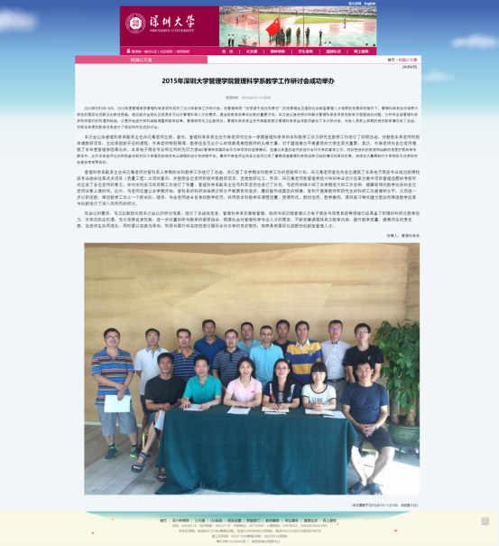 标题:2015年深圳大学管理学院管理科学系教学工作研讨会