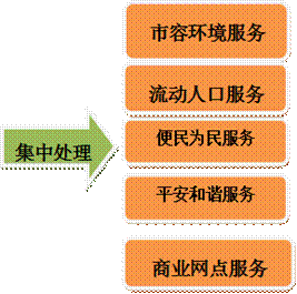 栖霞区仙林街道针对社会管理的重点难点问题,即,市容环境问题、流动人口问题、便民服务问题、平安和谐问题和商业网点问题等五项服务[24](就是所谓的“5S”),进行“模块化”——以每个社区为一个模块,整合街道领导、机关科室、社区人员、各类协管员、志愿者和社区范围内企事业单位等多元管理力量,建立主体明确、责任清晰的“五项服务”社会管理体系。“5S”针对社区基层面临问题的繁杂性以及在处理问题时不分缓急轻重的现状,抓住矛盾的主要方面,将解决问题高度重点化,在小问题发展到大问题之前,已经将最“烫手的山芋”解决掉,后续在处理小问题的时候不仅可以很快处理,更重要的是节省了人力、物力、财力。“模块化”则是将“高度重点化”的问题再“精细化”,整合街道的各方面力量,保证了在处理问题时的专业程度,相比较之前在处理问题的时候,上级随便派个工作人员,并且不管这个工作人员是否具有解决这个问题的专业性,然后走个过场,基层的工作者也是疲于对付,草草了事,到最后问题还是没解决,“模块化”是实实在在的解决了问题。