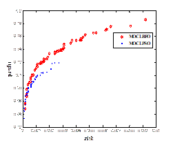 Table 3 shows the data obtained by MOCLBFO and MOCLPSO when the investment profit is the largest, including the investment proportion of the ten assets and the corresponding value of profit and risk. Similarly, Table 4 presents the corresponding results when the risk is the lowest. The best value is in italics. Fig.1 presents the pareto optimal front. Two conclusions can be drawn.