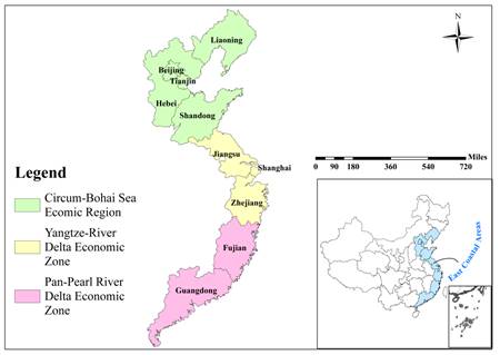 Fig. 1. Location of China’s east coastal areas