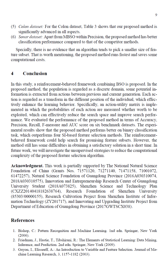 6.Ben Niu, Xuesen Yang(杨学森), Hong Wang*.Feature Selection using a Reinforcement-Behaved Brain Storm Optimization. IEEE CEC 2019. 2019已录用.