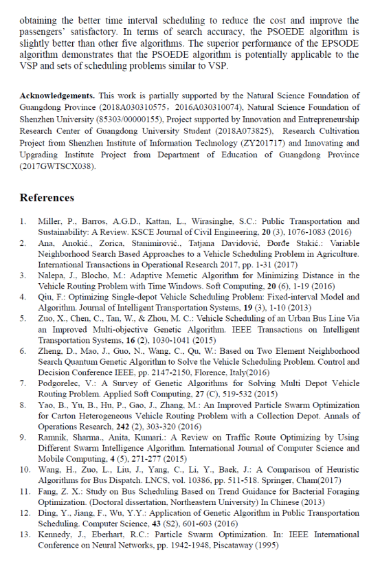 5.Hong Wang, Lulu Zuo(左路路), Xuesen Yang(杨学森). A Novel PSOEDE Algorithm for Vehicle Scheduling Problem in Public Transportation. 10th International Conference, ICSI 2019已录用.