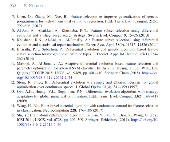 4.Ben Niu, Xuesen Yang(杨学森), Hong Wang*, Kaishan Huang, and Sung-Shun Weng. Feature Subset Selection Using a Self-adaptive Strategy Based Differential Evolution Method. Advances in Swarm Intelligence. 9th International Conference, ICSI 2018, Shanghai, China, 17-22 June 2018.
