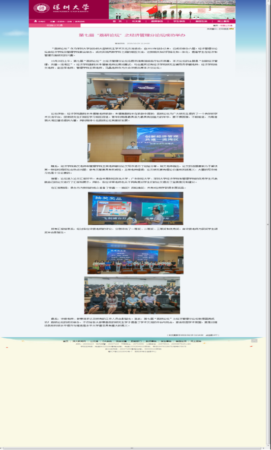 “荔研论坛”作为深圳大学创办的大型研究生学术文化交流活动,自2013年创办以来,已成功举办六届。经济管理分论坛由经济学院及管理学院联合举办,成功实现两种学科之间的相互交流,达到相关知识网络化和一体化,提高学生在经济和管理方面研究的兴趣。