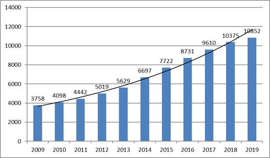 图1:深圳市近十年(2009-2019)社会组织发展趋势图[2]