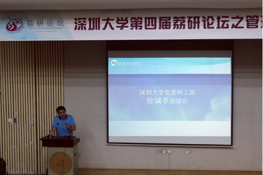 9月18日上午,第四届“荔研论坛”之管理分论坛在科技楼3号报告厅举行。深圳大学管理学院院长刘军教授、研究生院党总支徐诚革副书记、管理学院刘雁妮副教授、丁婉玲、马建华、刘筱、殷俊、耿旭、梁雨晴、马利军、罗汉洋、秦全德老师及研究生院学生工作办公室袁傲老师,来自本校及华南农业大学的优秀论文获得者、各学院的研究生代表出席了本次活动。