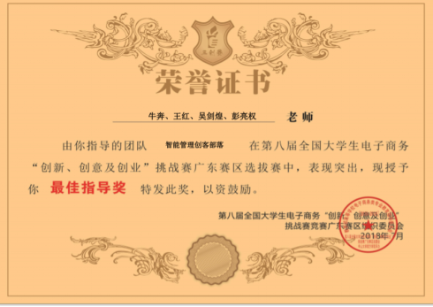 【学科竞赛20180610】管理学院研究生团队斩获全国大学生电子商务“创新、创意及创业”挑战赛广东省一等奖、最佳指导奖