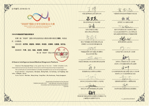 在此届“深创杯”比赛中,有来自全球50多个国家和地区、80多所高校的国际青年大学生,以及国内120多所高校的1400多个创新创业项目、7500多名大学生报名参赛。牛奔教授带领的“智能管理创客部落”团队经过初赛、小组赛、半决赛、总决赛的层层筛选下,在1400多个国际、国内队伍中脱颖而出最终凭借优秀的人工智能医疗辅助诊断平台开发项目和扎实的团队实力,于12月总决赛中获“突出双创项目奖”和全国二等奖的好成绩。