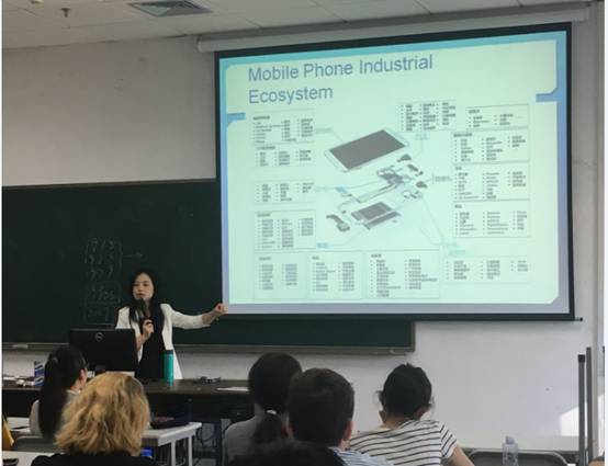 继成功的开场白后,丁婉玲老师细致地和大家分享了深圳的创新技术产品,各类手机产品及相关的市场,留学生们目不转睛,在仔细听讲座之余纷纷举手提问,丁老师以浅显易懂的回答满足了留学生的求知欲。从丁婉玲老师的讲座中,留学生们深刻感受到深圳作为一座年轻的城市,从山寨模仿到自主创新发展及目前所取得的成就,深圳确实走了一条属于自己的独一无二的特色创新道路。