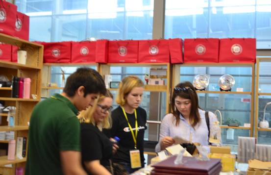 首先,5位接待人员分别融入到不同留学生中,形成5个小团体,带领华师大留学生参访了深圳大学的时光广场,并向外籍留学生介绍:位于深大时光广场中央的日晷记录着每一位深大学子在这里修行的时间,也时刻提醒着深大学子珍惜时间努力学习。与此同时,带领留学生团参观了深大脚踏实地墙并与之分享了深大的校训——“自立、自律、自强”。外籍留学生津津乐道并纷纷拿起手机拍摄这两个对深大具有深远意义的建筑。第二个参访地点是深圳大学文山湖,留学生对湖中的几只黑天鹅特别感兴趣并沿着美丽的文山湖边缓慢行走,享受着惬意的湖景。最后的参访点为深圳大学汇星楼的深大文化品牌店。许多留学生表示很喜欢该店售卖的深大纪念品。
